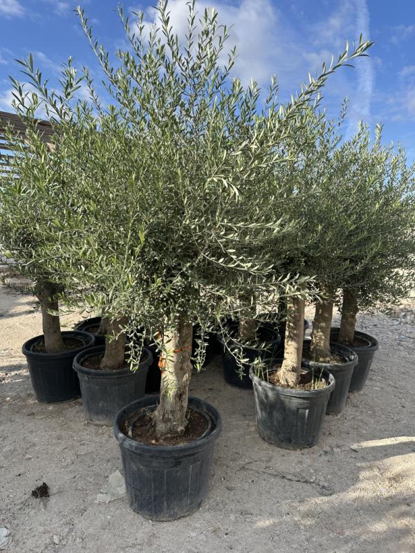 Olijfboom 70 liter. Grote bol op dikke stam.